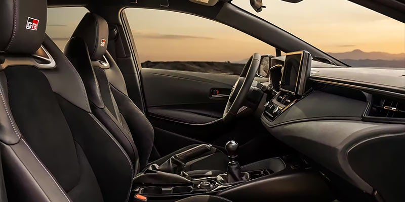 Designed with insight from professional drivers, GR Corolla's standard 12.3-in. Multi-Information Display (MID) puts the most vital information in your line of sight. Power it up, and the start-up GR animation lets you know it’s raring to go. And with a GR meter that features digital gauges for power settings and turbo pressure, a center tach and gear position indicator lights, you’ll find it easier to focus on what’s ahead.