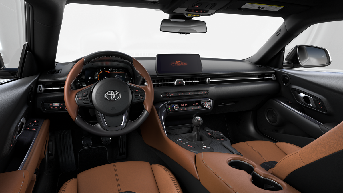 - 8.8-in. touchscreen with Supra Command featuring touchpad control with navigation, AM/FM, Digital Audio, SiriusXM®, wireless Apple CarPlay® compatible, voice recognition and USB /Bluetooth®® connectivity. See toyota.com/connected-services/grsupra-support for details.